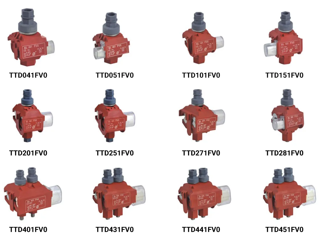 Se utiliza para la conexión en derivación de cables aislados en sistemas de distribución de edificios, conexión de cables aislados de baja tensión en líneas aéreas, conexión en derivación de cables aislados de servicio de entrada de baja tensión, sistema de distribución de alumbrado público, etc.